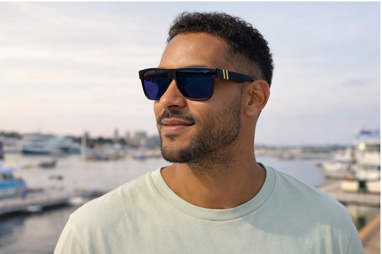 The Primes are built for everyday wear along the coast — from dockside afternoons to late-night drinks by the water. Featuring a bold square frame with subtle gold accents, these sunglasses deliver a clean, modern look that stands out without trying too hard.